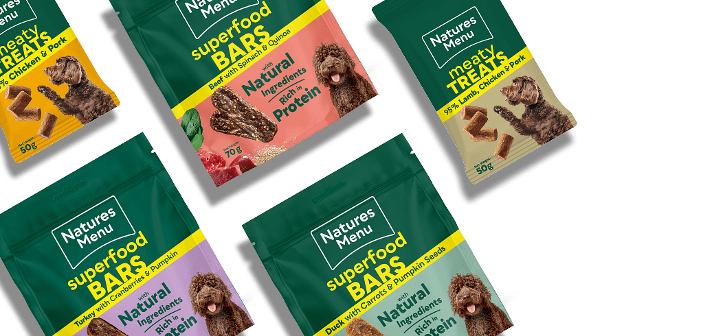 A bigger variety of flavours to explore Includes 3 meaty treats and 5 superfood bar flavours